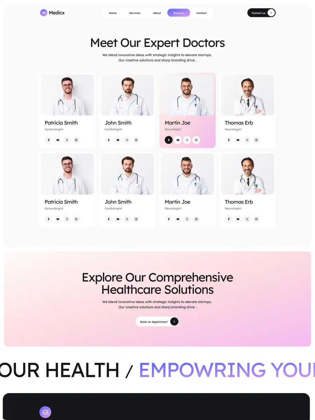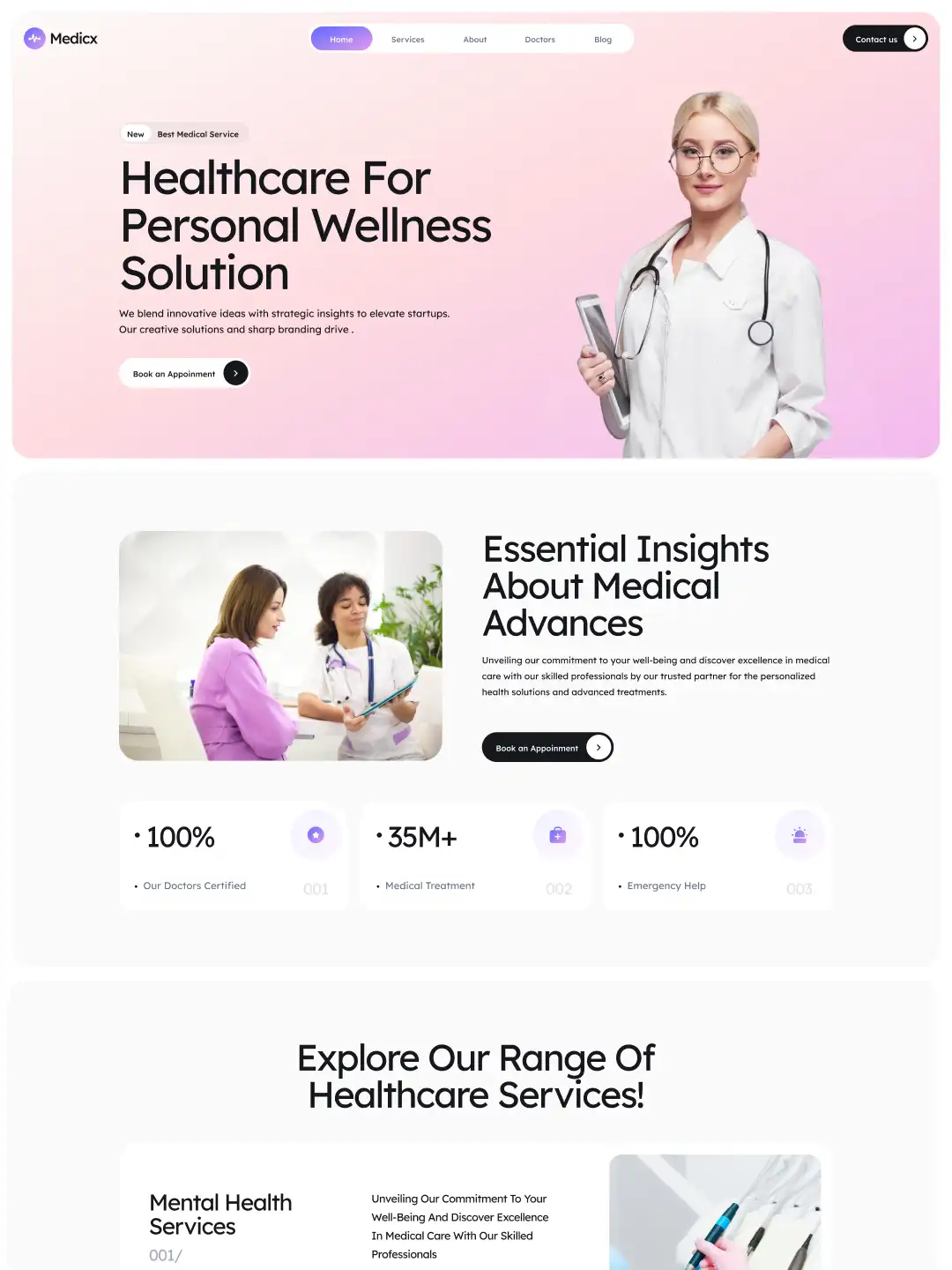 Medicx is a professional medical clinic WordPress template for doctors, healthcare centers, dental clinics, and specialist practices. Present your services, doctors, insurance info, and booking options in a clear, patient-friendly layout—powered by Frontis Blocks for fast loading, accessibility, and SEO.